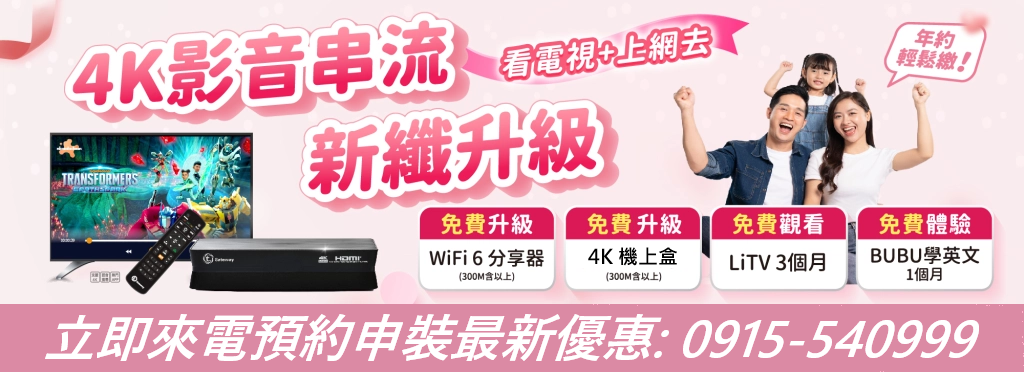 提供數位有線電視、光纖寬頻網路,預約裝機及產品諮詢 一對一服務、快速效率及最優惠的組合方案光纖寬 頻、網路WiFi、有線電視、第四台最新優惠方案